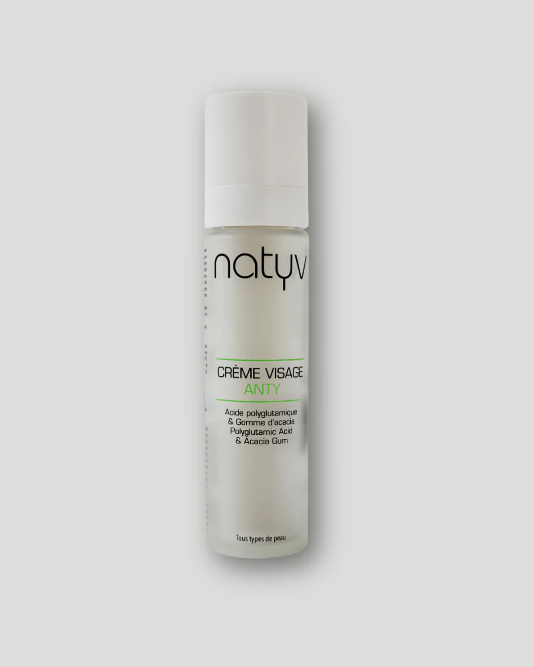 Crème anti-âge naturelle raffermissante et repulpant. Offrez à votre peau une nouvelle jeunesse avec la Crème Visage ANTY de Natyv, un soin anti-âge naturel formulé avec plus de 99 % d’ingrédients d’origine naturelle. Cette crème riche et soyeuse raffermit, repulpe et lisse la peau, tout en procurant une hydratation intense et durable.