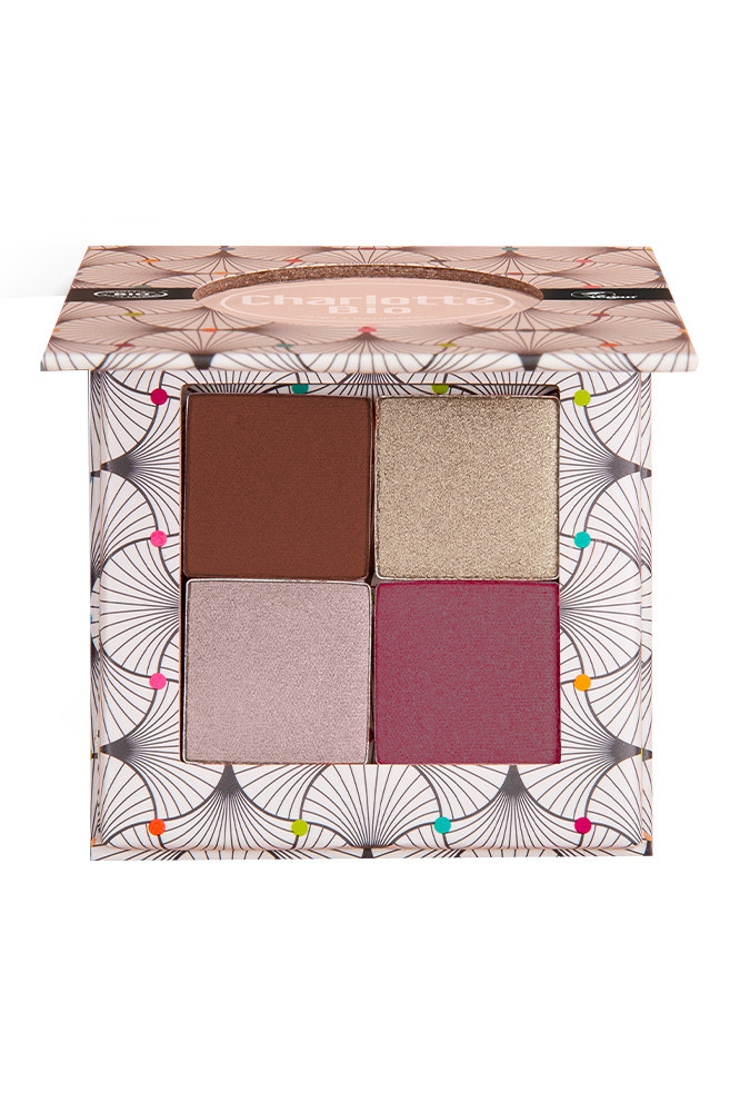 Une palette 100 % naturelle aux teintes nude chaudes, mates et métallisées, pour un regard subtil ou intense, selon vos envies. Vegan, bio et facile à appliquer.